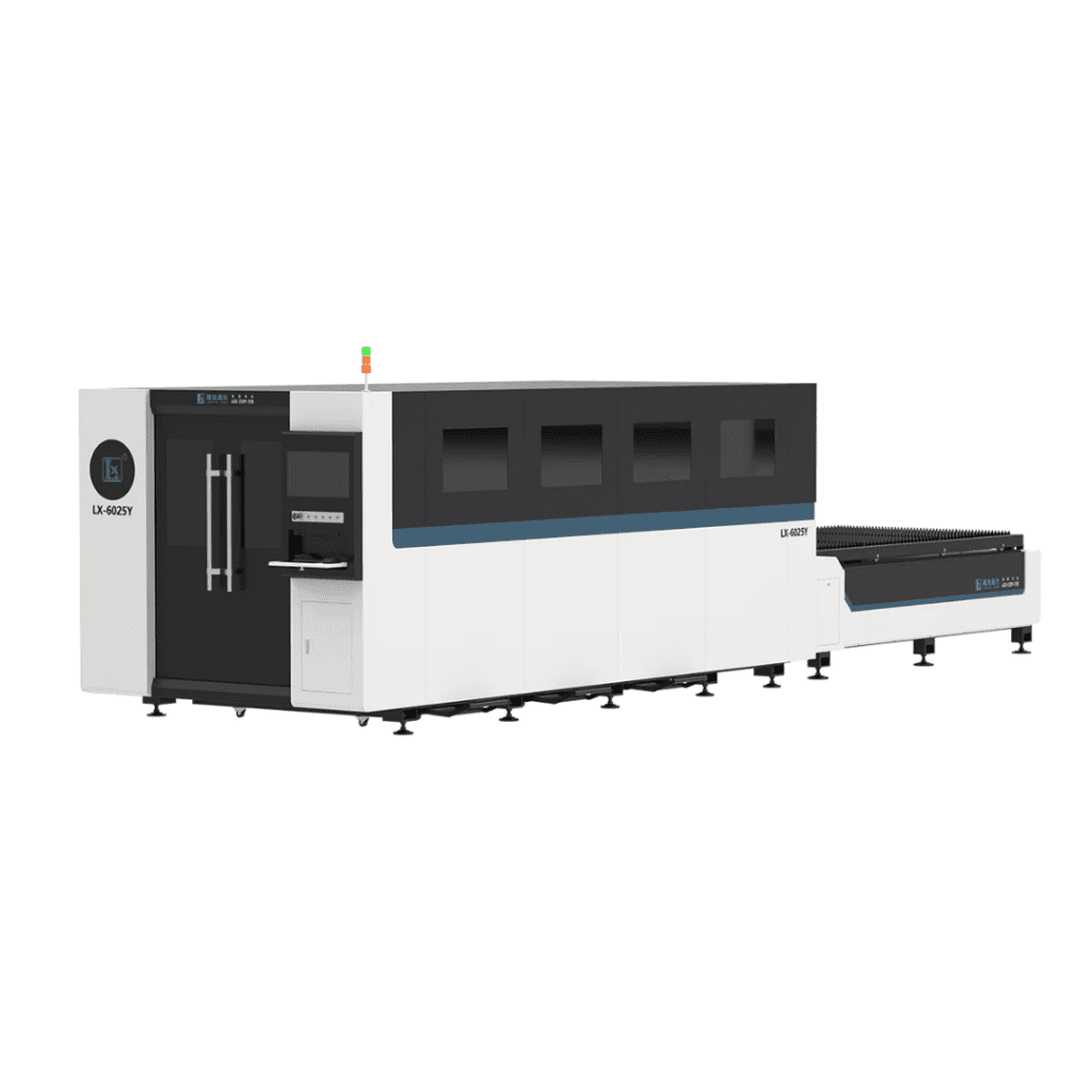 A LX-6025Y é uma máquina de corte a laser de fibra com dupla plataforma envolvente, projetada para alta potência e grande formato (6000×2500mm). Oferece máxima segurança operacional, alta eficiência produtiva e desempenho estável em cortes industriais de grande porte.