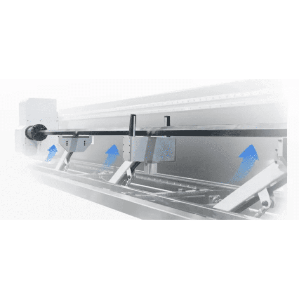 Dispositivo servo com elevação e suporte em tempo real durante todo o processamento do tubo, garantindo maior estabilidade, precisão dimensional e qualidade de corte.