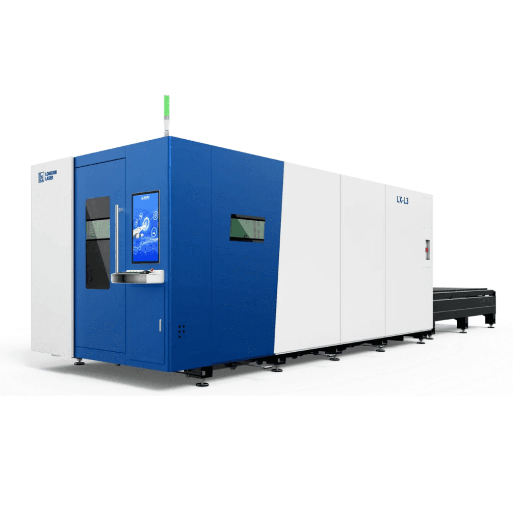 A LX-L3 é uma máquina de corte a laser de fibra para chapas com plataforma de troca, projetada para alta produtividade e operação estável em ambientes industriais. Com estrutura reforçada, viga de alumínio de alta resistência, proteção da cabeça do laser e sistema inteligente de corte, oferece precisão, velocidade e eficiência no processamento.