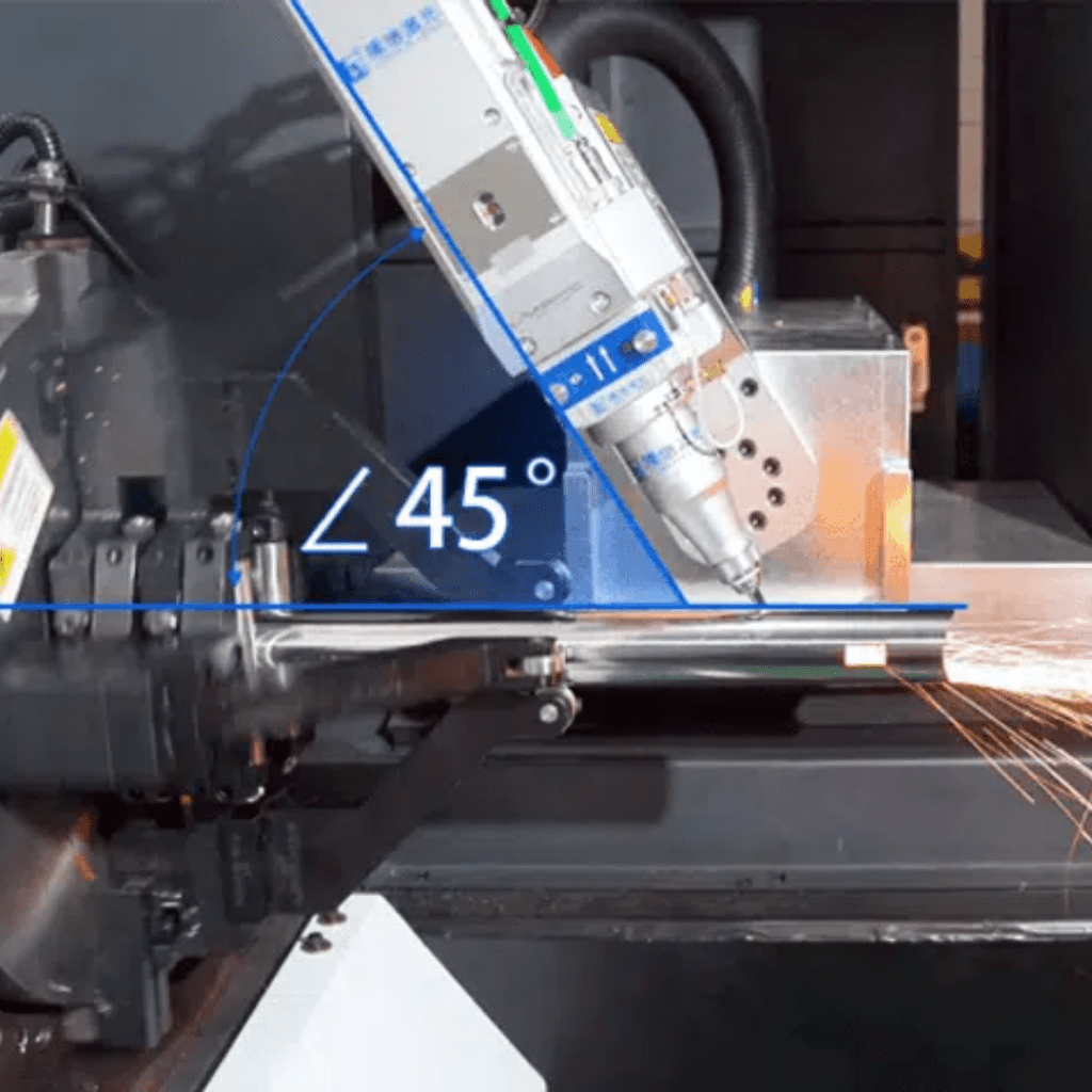 Corte chanfrado em 45°, adequado para o processamento de diversos materiais de tubulação, incluindo tubos redondos, tubos quadrados e tubos retangulares.