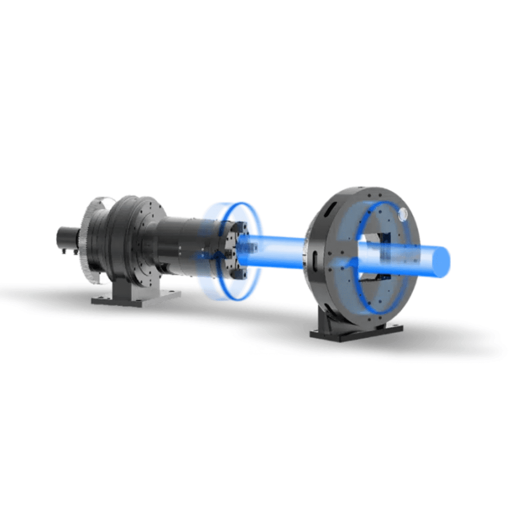 Cada tubo pode suportar até 75 kg, com repetibilidade de posicionamento de 0,05 mm e velocidade máxima de 150 r/min. O mandril frontal possui método de fixação fixa, garantindo estabilidade e precisão durante o corte.